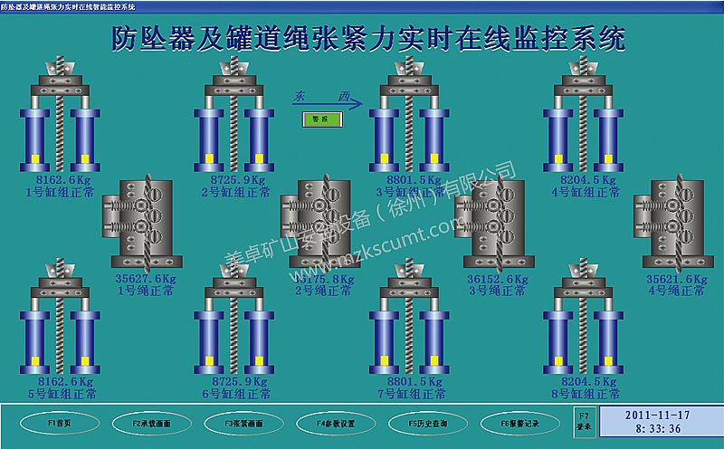 通過在防墜器的防墜繩和罐道繩上安設張力傳感器,實時采集繩張力信號,并通過對檢測數據進行處理與判斷,達到對防墜器誤動作的判斷以及罐道繩狀態判斷,從而保障提升系統的安全、可靠、穩定運行。